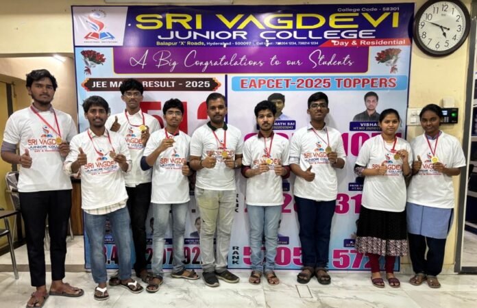 జేఈఈ మెయిన్స్ ఫలితాలలో విజయ దుందుభి మోగించిన వాగ్దేవి కళాశాల విద్యార్థులు