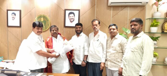 జల్ పల్లి 65 వ డివిజన్ కాంగ్రెస్ పార్టీ కో – ఆర్డినేటర్ షేక్ జహంగీర్, ఐఎన్టీయూసీ అధ్యక్షుడు చింత కింది నవీన్ గౌడ్, నాయకులు బాలాజీ, ప్రవీణ్ గౌడ్, ప్రశాంత్ తదితరులు టియుఎఫ్ఐడిసి చైర్మెన్ చల్లా నరసింహారెడ్డిని వారి కార్యాలయంలో మర్యాద పూర్వకంగా కలిసి పుష్పగుచ్చం అందజేశారు. జల్ పల్లి డివిజన్ లో సమస్యలపై ఆయనతో చర్చించారు. జల్ పల్లి డివిజన్ లో మౌలిక వసతుల కల్పనకై కృషి చేయాలని ఆయనను కోరారు.
