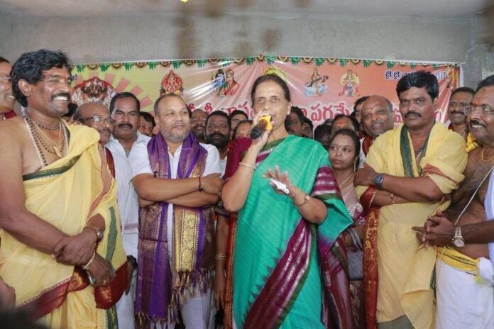 కన్యకా పరమేశ్వరి అమ్మవారి ఆశీస్సులతో ప్రజలందరూ సుఖసంతోషాలతో, చల్లగా ఉండాలని మాజీ మంత్రి, ఎమ్మెల్యే సబితా ఇంద్రారెడ్డి అన్నారు. మీర్ పేట్ డివిజన్ పరిధిలోని జిల్లెలగూడ ఎమ్మెల్యే క్యాంప్ కార్యాలయం సమీపంలో నూతనంగా నిర్మించిన శ్రీశ్రీశ్రీ వాసవి కన్యకా పరమేశ్వరి దేవస్థానం ప్రారంభోత్సవ కార్యక్రమాన్ని ఆలయ కమిటీ చైర్మన్ తేరటిపల్లి శ్రీనివాస్ గుప్తా, అధ్యక్షుడు పచ్చిపులుసు శ్రీరామచంద్రమూర్తి గుప్తా, ప్రధాన కార్యదర్శి ఇరువెంటి సురేష్ గుప్తా, కోశాధికారి గందె వెంకటేశ్వర్లు గుప్తా, కమిటీ సభ్యులు అంగరంగ వైభవంగా నిర్వహించారు. ఆలయంలో శ్రీ వాసవి కన్యకా పరమేశ్వరి అమ్మవారు, శ్రీ గణపతి స్వామి, స్పటిక లింగ సహిత సరస్వతి దేవి విగ్రహాల ప్రతిష్టాపనతో పాటు ధ్వజస్తంభ ప్రతిష్ట కార్యక్రమాలు నిర్వహించబడ్డాయి. భారీ ఎత్తున అన్నదాన కార్యక్రమం నిర్వహించారు. విచ్చేసిన భక్తులకి ఎలాంటి ఇబ్బందులు లేకుండా ఆలయ కమిటీ సభ్యులు అన్ని ఏర్పాట్లు చేశారు. ఈ కార్యక్రమంలో ఎమ్మెల్యే పట్లోల్ల సబితా ఇంద్రారెడ్డి, రాష్ట్ర బీజేపీ కో-ఆపరేటివ్ సెల్ కన్వీనర్ కొలన్ శంకర్ రెడ్డి పాల్గొని ప్రత్యేక పూజలు నిర్వహించారు. ఈ సందర్భంగా ఎమ్మెల్యే సబితా ఇంద్రారెడ్డి మాట్లాడుతూ.. స్త్రీల ఆత్మగౌరవాన్ని చాటిచెప్పిన కలియుగ పార్వతీదేవీగా అమ్మవారిని భక్తులు కొలుస్తారన్నారు. అహింస, ఆత్మ త్యాగం, శాంతి, ధర్మ నిరతికి ప్రతిరూపం అమ్మవారు. దేశవ్యాప్తంగా ఆర్య వైశ్యులతో పాటు అన్ని వర్గాల ప్రజలు అమ్మవారిని కొలుస్తారన్నారు. వైశ్యులంతా ఐక్యమత్యంగా ఉండి వాసవి మాత జయంతిని ఘనంగా నిర్వహించుకోవాలని తెలిపారు. వాసవి మాత సంకల్పంతోనే దేవాలయ నిర్మాణాన్ని నిర్మించడం జరిగిందని, ఆ నిర్మాణంలో తన పాత్ర ఉండడం ఎంతో సంతోషమని అన్నారు. దేవాలయ నిర్మాణానికి కమిటీ సభ్యులు ఎంతో కష్టపడ్డారని, వారు ఎన్నో జన్మల పుణ్యఫలం వల్లనే ఈ సంకల్పం నెరవేరిందని అన్నారు. మీర్పేట, బడంగ్ పేట, జల్పల్లి ఆర్యవైశ్య సంఘాలన్నీ ఐక్యంగా ఉండాలని సూచించారు. అనంతరం మిషన్ భగీరథ కార్పోరేషన్ వైస్ చైర్మన్ ఉప్పల వెంకటేష్ గుప్తా మాట్లాడుతూ.. ఈ వాసవి మాత దేవాలయ నిర్మాణానికి భూమి కేటాయించిన సబితా ఇంద్రారెడ్డికి కృతజ్ఞతలు తెలిపారు. వైశ్య పేద విద్యార్థుల చదువు కోసం బాలాపూర్ మండలంలో ఓ విద్యాలయాన్ని ఏర్పాటు చేస్తే తనవంతుగా రూ. 50 లక్షలు అందజేస్తానని సభా ముఖంగా తెలియజేశారు. అందులో ఆర్యవైశ్య పేద విద్యార్థులతో పాటు, సమాజంలోని పేద వర్గాలకు కూడా స్థానం కల్పించి విద్యను అందజేయాలని కోరారు.